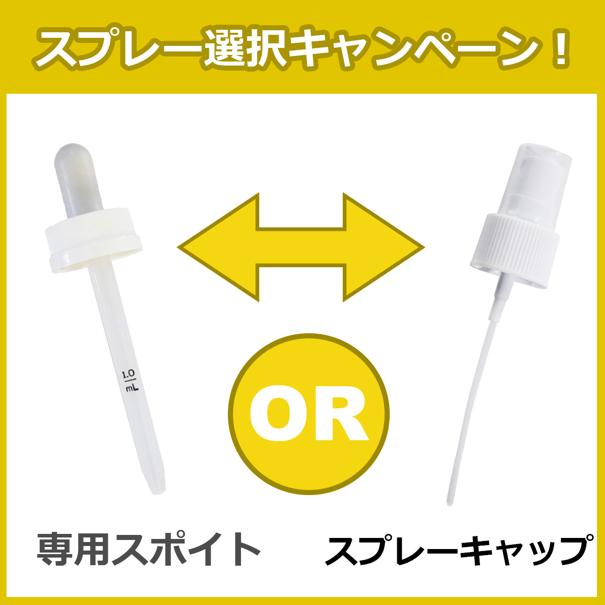 「カートに入れる」ボタンの上にあるプルダウンメニューから、「専用スポイト」または、「スプレーキャップ」をお選びいただけます。